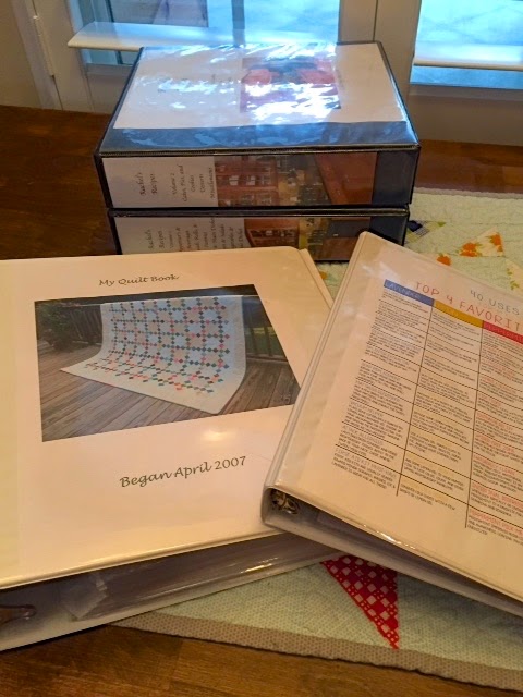 I like to use notebooks with page protectors to organize papers I want to keep such as pictures and descriptions of the quilts I've made, my recipe collection, and essential oil uses.